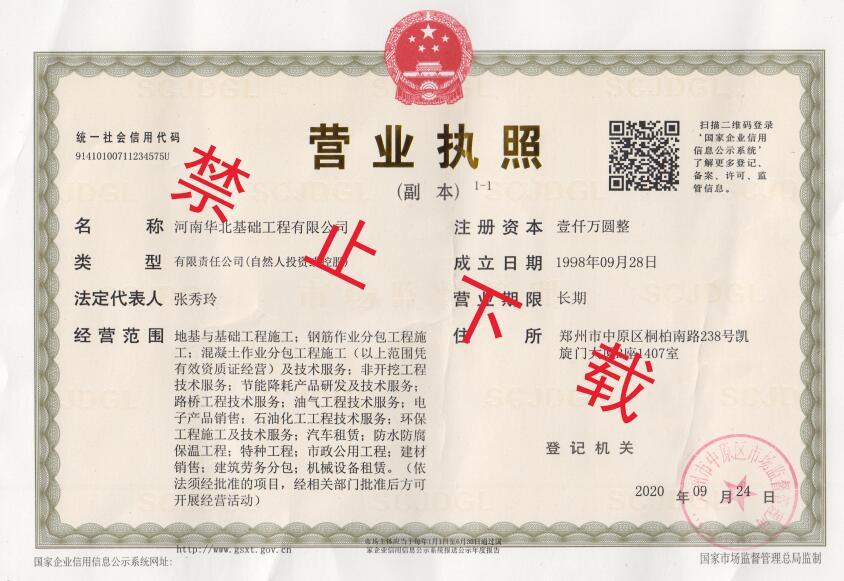 公司注冊資金1000萬元,經營范圍涉及地基與基礎施工,鋼筋作業分包工程施工,混凝土作業分包工程施工及技術服務,地基基礎注漿加固工程技術服務,非開挖工程技術服務,節能降耗產品研發及技術服務,路橋工程技術服務,油氣工程技術服務,電子及智能化技術服務,石油化工工程技術服務,環保工程施工及技術服務,汽車租賃。